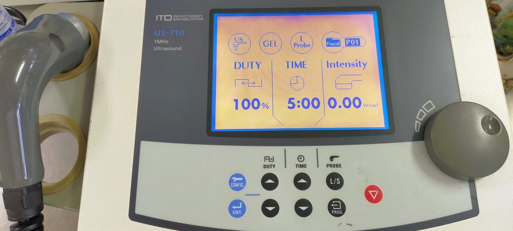 超音波とは人間には聞こえないほどの細かい周波数で振動する音波のことです。 深部のコリをほぐしたり、外傷の炎症を抑えたりする作用に優れた施術機器です。